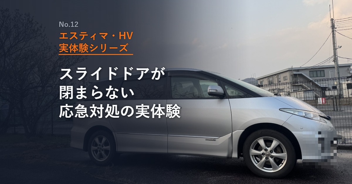 この記事では、48万km走ったエスティマハイブリッドで実際に起きたスライドドアの症状と、車屋の店長に教えてもらった応急対処の方法をまとめています。同じ症状で困っているエスティマオーナーの参考になれば幸いです。